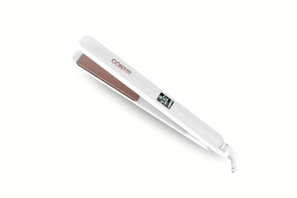 Achieve salon results at home with the Conair Double CeramicFlat Iron. With 1-inch extra-long plates, 5 heat settings up to 410°F, and double ceramic technology, enjoy fast styling, frizz-free shine, and versatility for all hair types.
