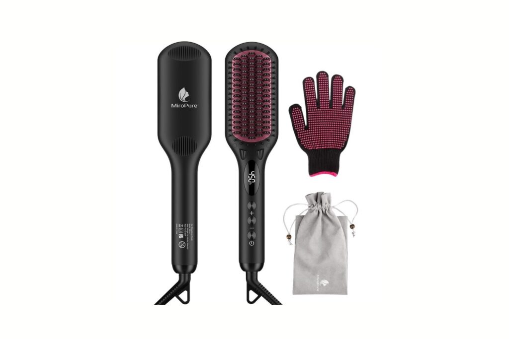 Transform your hair routine with the MiroPure Enhanced Ceramic Hair Straightener Brush. This 2-in-1 ionic straightening brush smooths and detangles while delivering sleek, frizz-free results in minutes. With 16 adjustable temperature settings and a fast 60-second heat-up, it’s perfect for all hair types—from thin and fine to thick and curly. The anti-scald feature protects your scalp and strands, while the temperature lock and 60-minute auto shut-off ensure safe styling every time. A double ionic generator adds shine and reduces frizz, giving you salon-quality, natural-looking results quickly and easily.